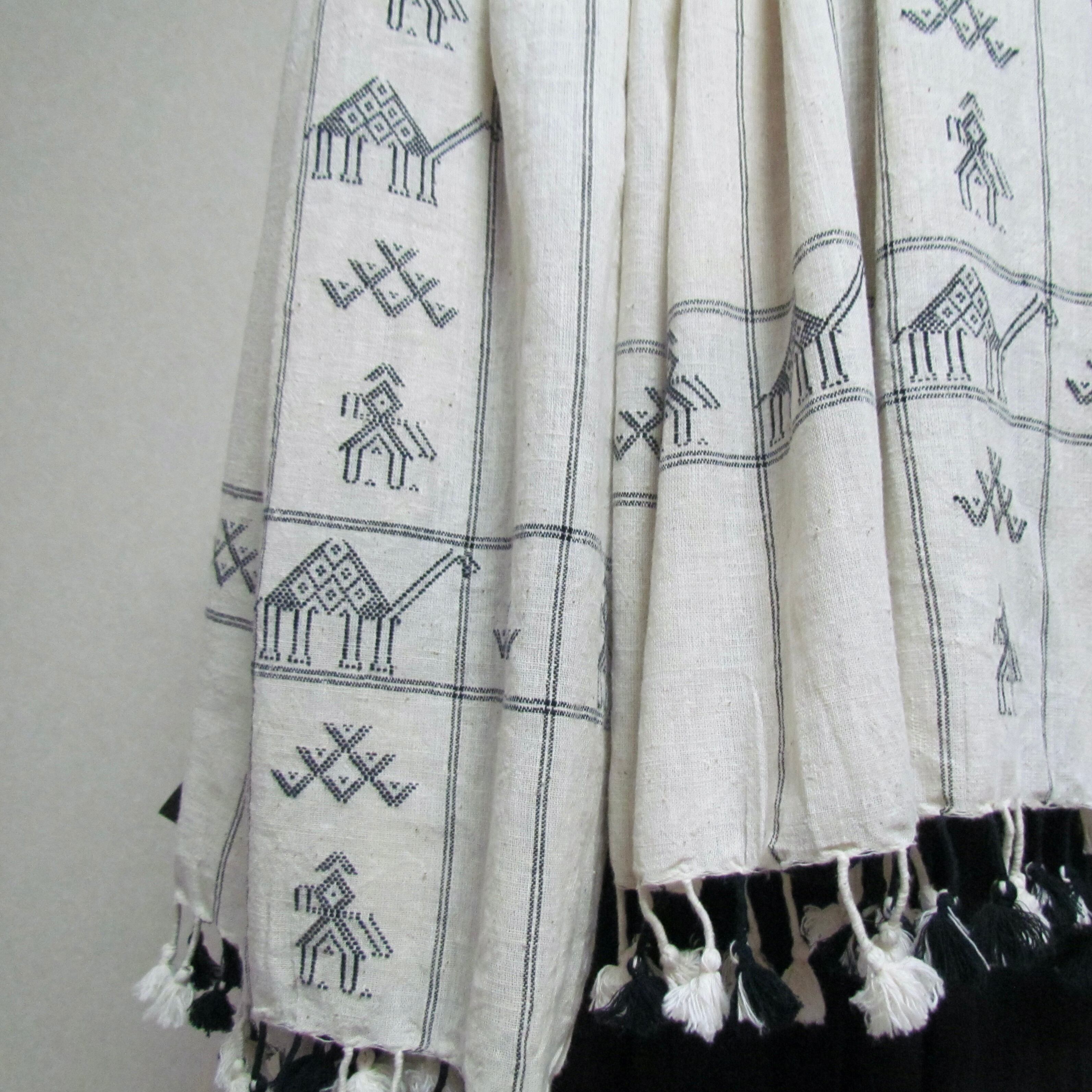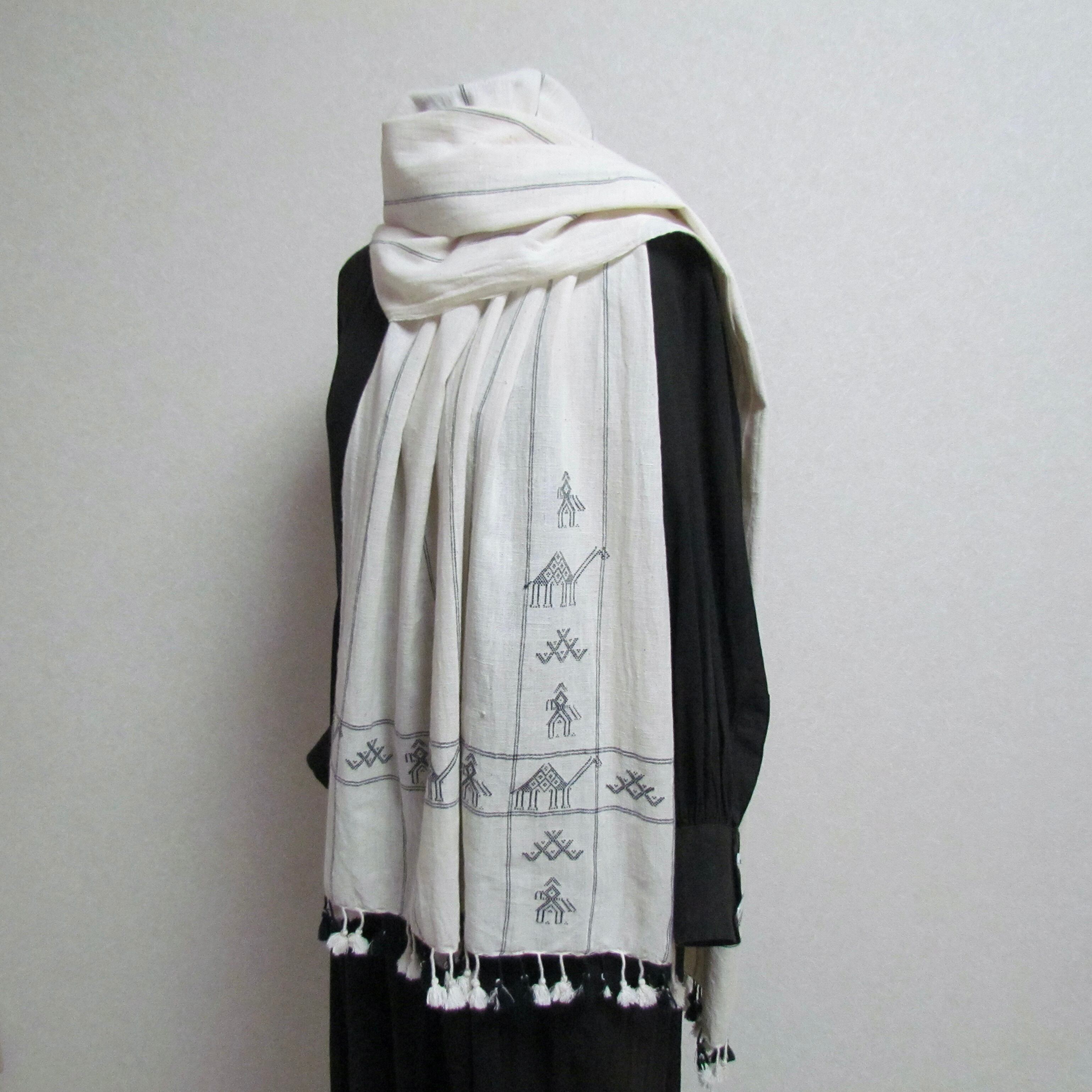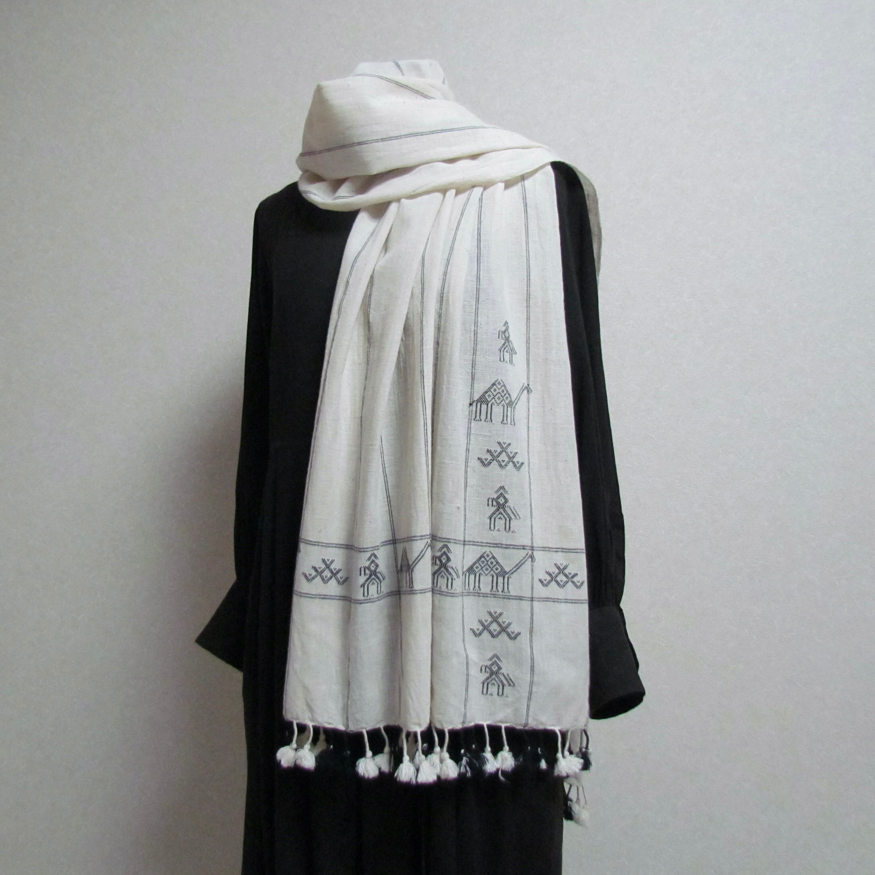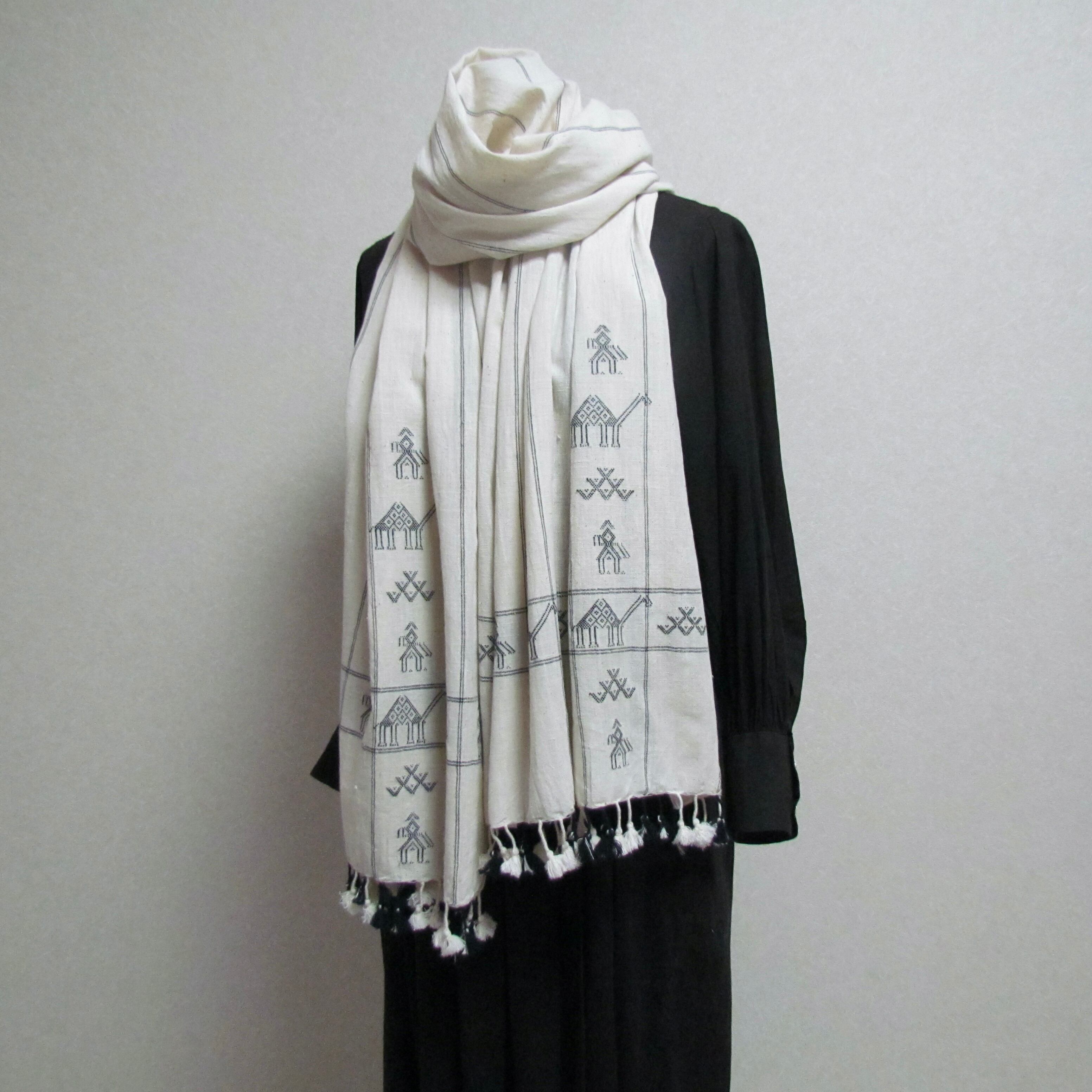 カッチ地方の在来種 カラコットンの手紡ぎ手織りのストール